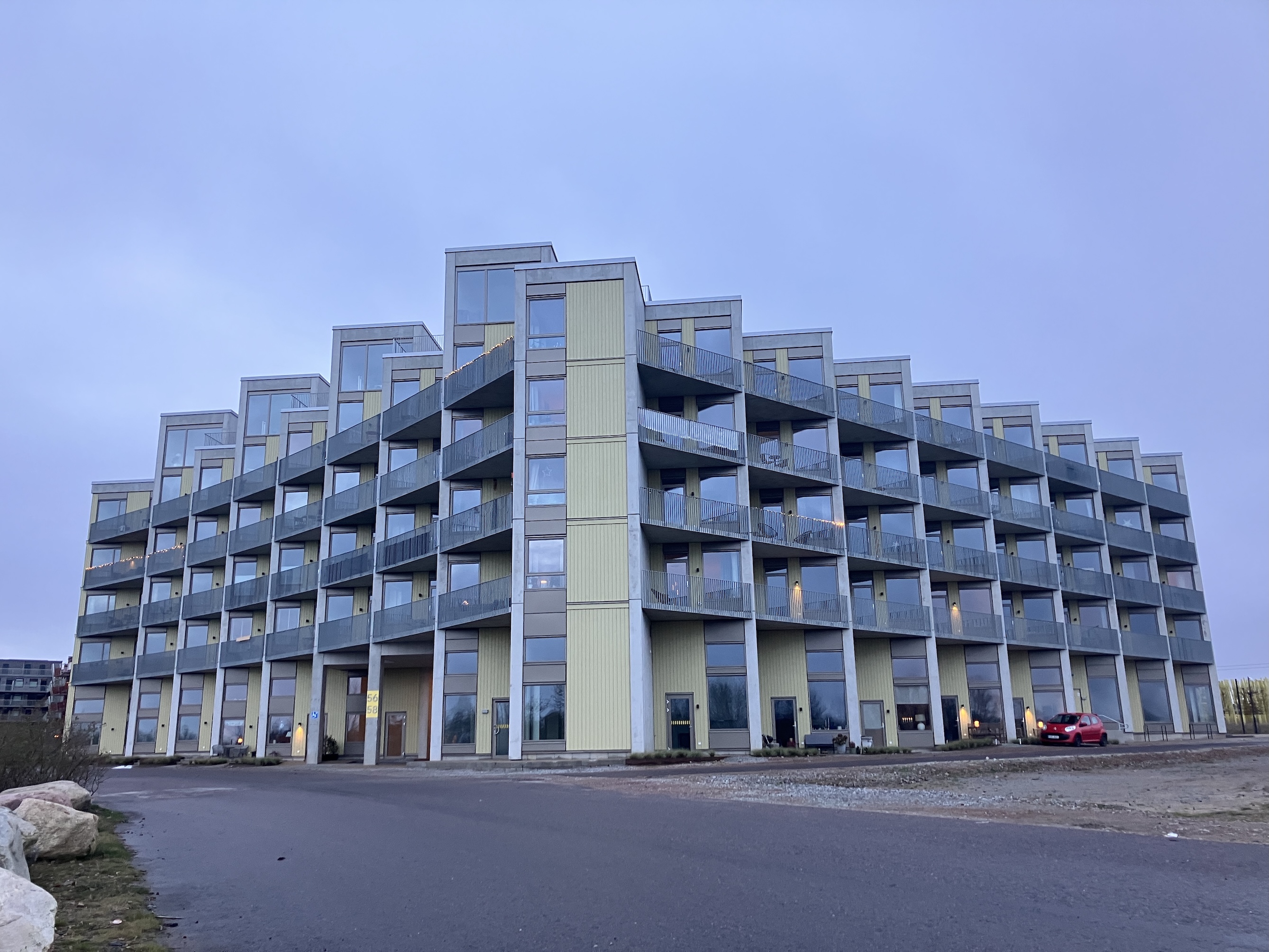 De gula träpartierna ser förvisso ut som en kompromiss, även om jag förstår tanken med att kombinera betongen med varmare kulörer. Men Pärlan ser helt enkelt ut att vilja något mer för sina invånare än grannhusen – och förtjänar inte epitetet fulaste nybygge.